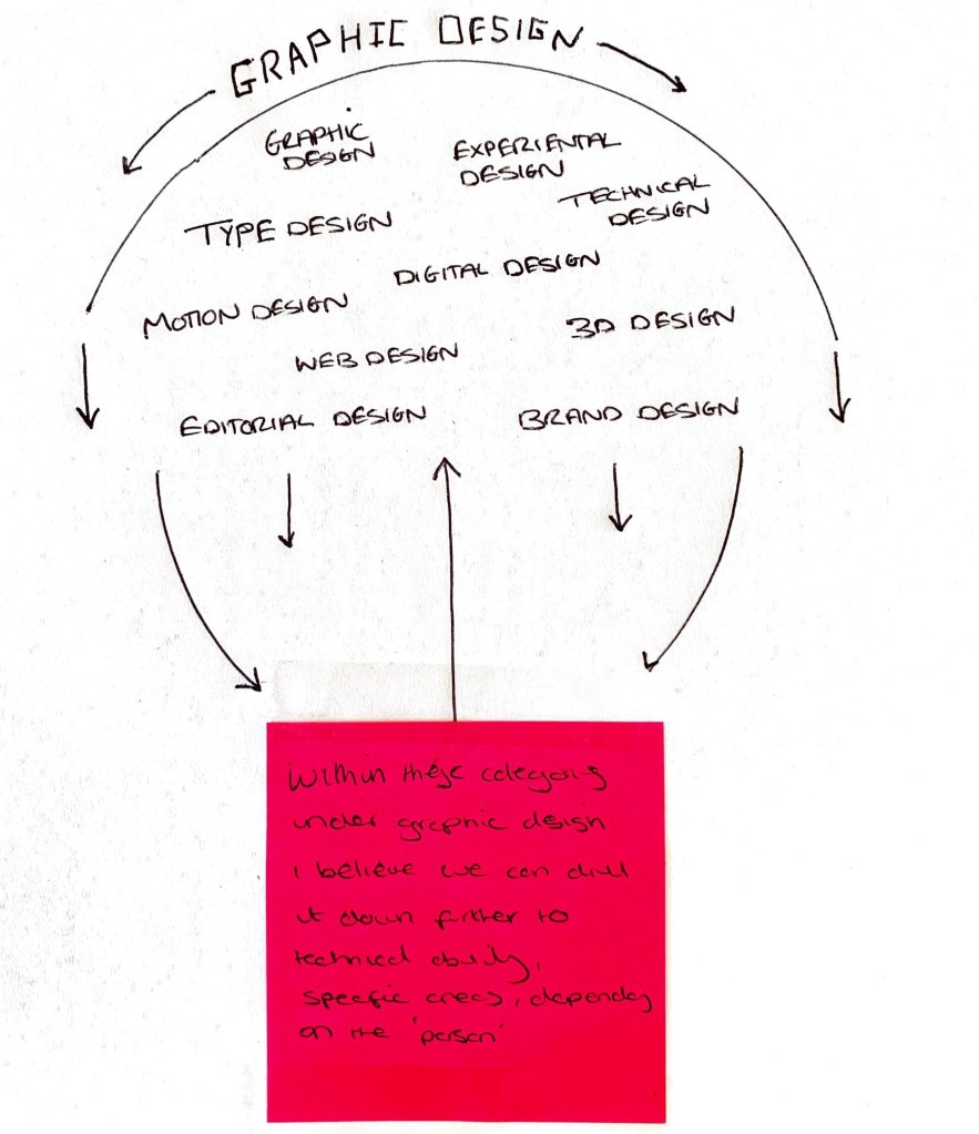 Within the category ‘Graphic Design’ I see these being some of the main terms of work today however I think ‘Graphic Design’ goes beyond this. If we look at what a team at an agency might look like that could have Freelancers, Marketers, Strategists, Social Media, Designers (Junior, Midweight, Senior, Art Director)