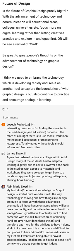 Over the past couple of weeks though I have started to see areas where I think graphic design is more specialised such as typography, a true craft within graphic design itself, something maybe I wasn’t sure was a role in itself or integrated within graphic design itself.