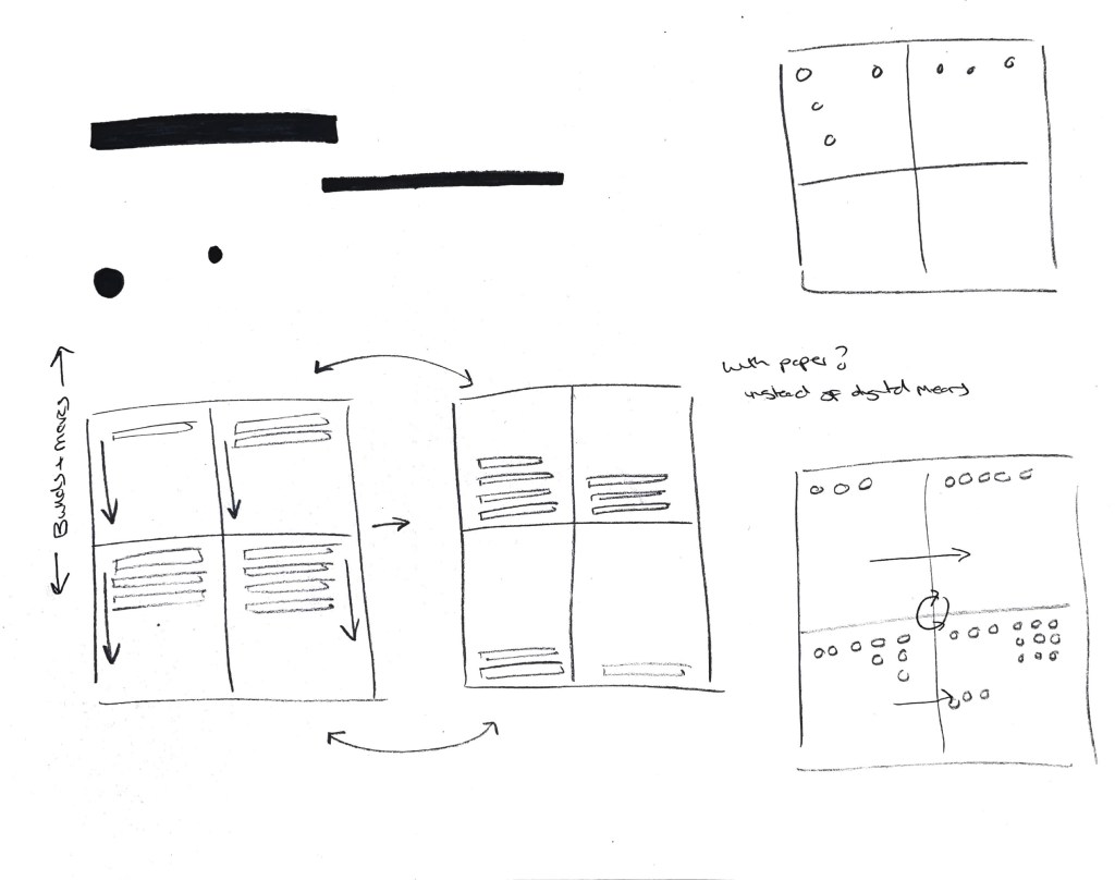 To look at: Are the squares too harsh? could I use softer shapes (circles, freeform) like the original drawings. Do the squares give off a technical / digital feeling? Be more confident in the process I am doing, trying to refine to early which has held me back.