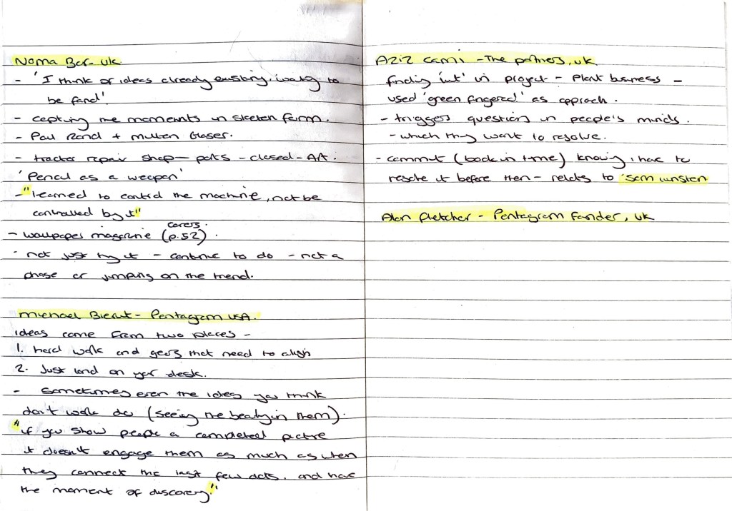Reading through Noma Bar’s contribution to A smile in the mind; witty thinking in graphic design got me thinking further from week 7 when we had to choose an object and research it. Objects, things, stories can take on different forms and narratives. Noma’s mention of the tractor repair shop closing down and the owner using the tools to create art is inspiring. He then saw this art all around his town? A shop which one repaired closed but continued its legacy and life in a different shape. Can this happen with ideas? Mistakes we make but don’t see further stories within them? It got me thinking about looking back through old sketchbooks and seeing what stories / sketches / marks could have other ways of living?