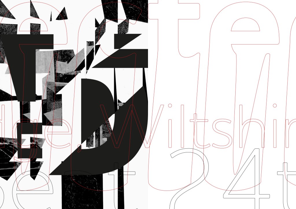 Development: Working with both collage and typography to show the immediate structural form of my location. Keeping the colours muted to evoke the dejected emotion. The typography is starting to work well however I am not enjoying working within Indesign to create the type. I’m almost pushing myself to work digitally whereas I think this needs treatment in analogue form first.