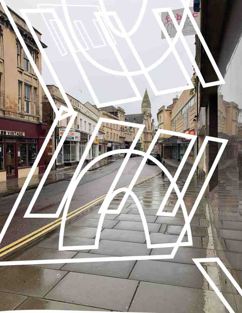 Tracing paper – screen – photo. Layering tracing paper work directly onto the screen to see the results. Want to explore adding in light when it’s dark. Also starting to introduce further layers of typography and manipulating them. Could these turn into almost informative pieces? Add in structured typography and messaging? Almost promoting the town as dejected to raise awareness of it’s possibilities through this creative expression?