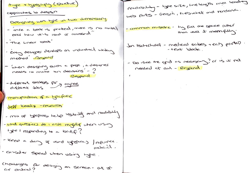 Below – First initial sketches for my typographic response to my chosen excerpt. Thinking about how the text can move around the page and respond to the words as you read them. I think the design should potentially be composed over multiple pages? So the text has space to fall off the page in line with the words. Bring in elements of hand scanned text? hand written text?