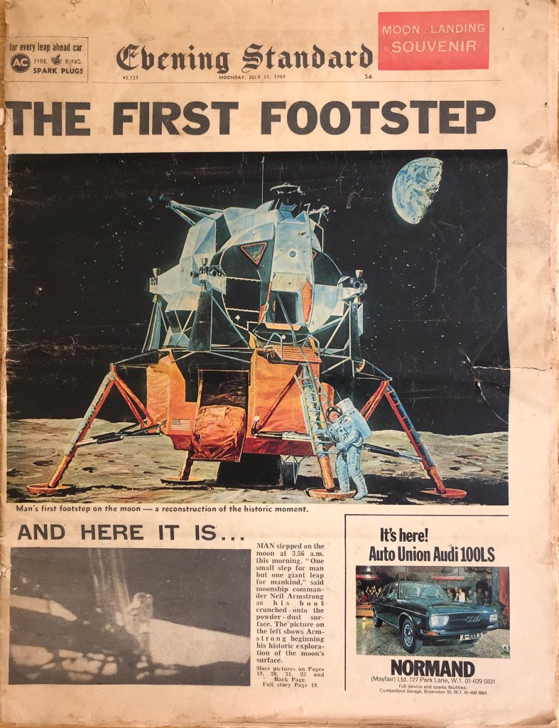 Below is a select number of newspaper headlines from the first moon landing. From the United States, UK, Italy, Australia and Russia (Soviet Union) Many using uppercase lettering which celebratory words. However some refer to those who landed on the moon as ‘they’ ‘man’ ‘men’ which is interesting? As it was a singular man who first set foot on the moon, that being Neil Armstrong in 1969.