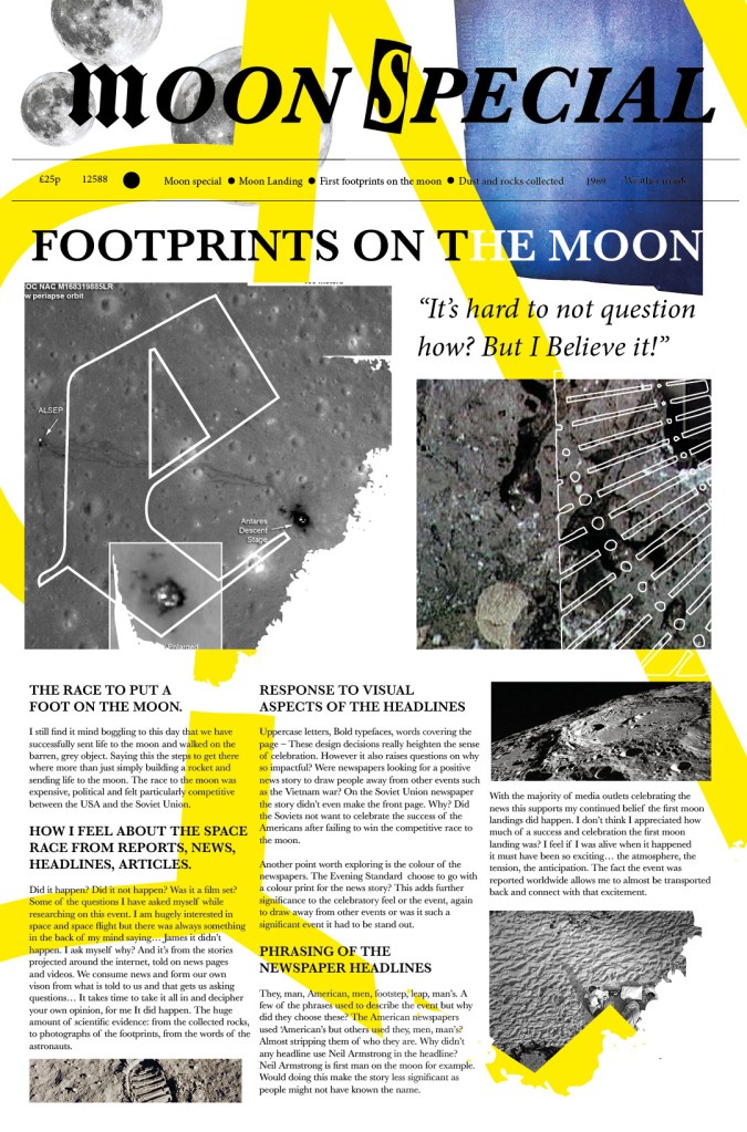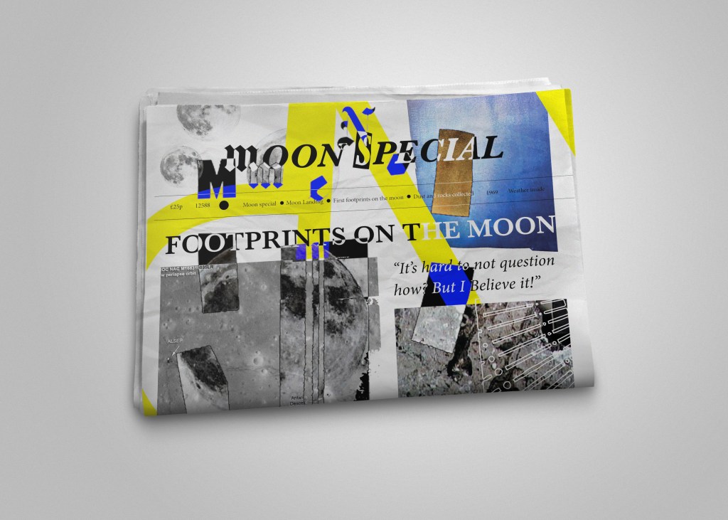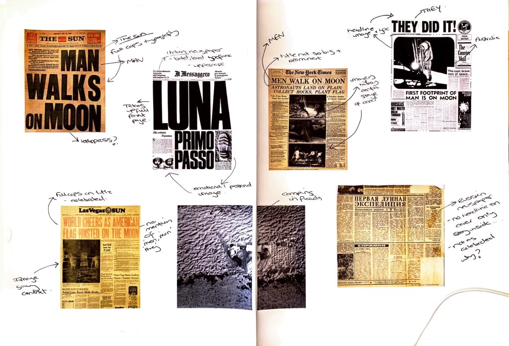 How newspapers reported the first man on the moon. Looking at the typography, scale of type, words used and use of imagery.