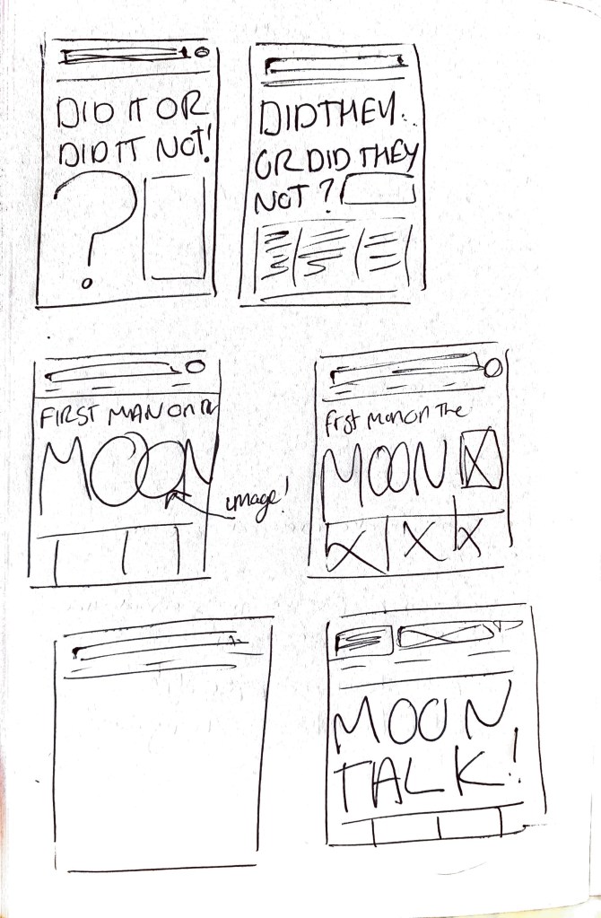 Quick sketches on how I can display my critical review. I want to work with a newspaper format to share my review. Putting emphasis on the title. Make it an almost up to date news article on the first man on the moon. I want to include people’s responses / quotes from the story.