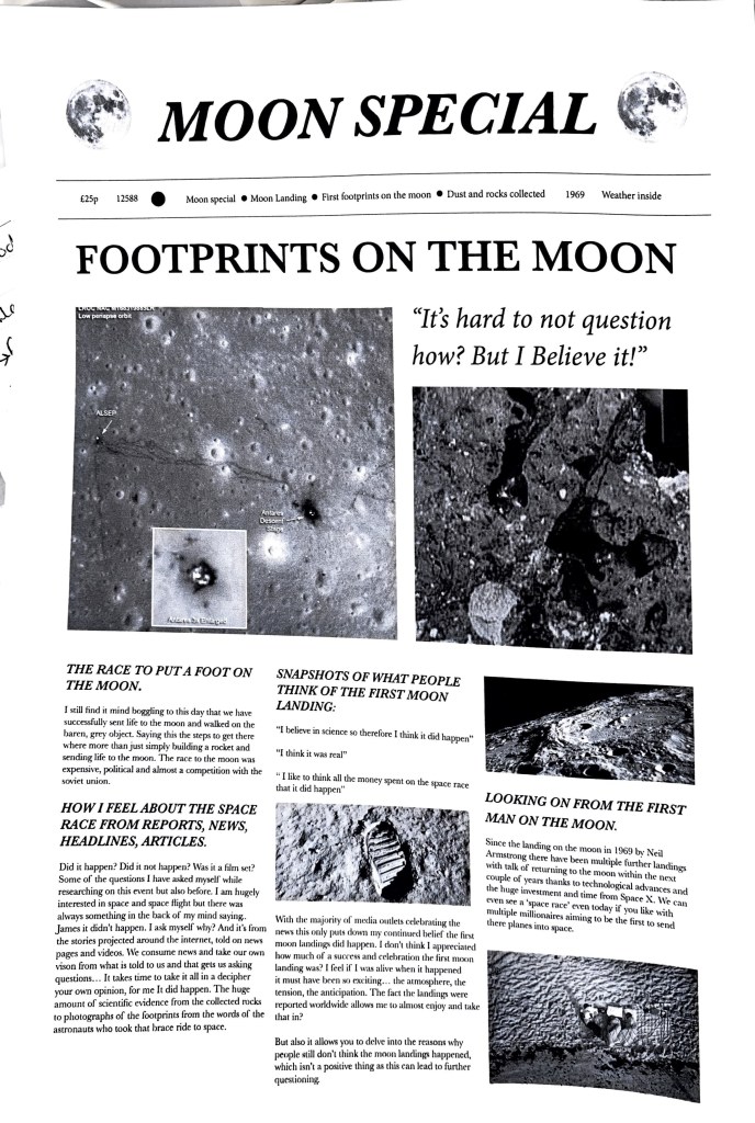 Did it happen? Did it not happen? Was it a film set? Some of the questions I have asked myself while researching on this event. I am hugely interested in space and space flight but there was always something in the back of my mind saying… James it didn’t happen. I ask myself why? And it’s from the stories projected around the internet, told on news pages and videos. We consume news and form our own vison from what is told to us and that gets us asking questions… It takes time to take it all in and decipher your own opinion, for me It did happen. The huge amount of scientific evidence: from the collected rocks, to photographs of the footprints, from the words of the astronauts.