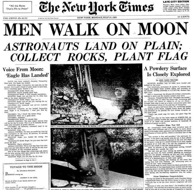 I am fascinated to know how newspapers would report this story today? When the next moon landing happens, which could be within the next few years will the story dominate? Will conspiracy theories arise?