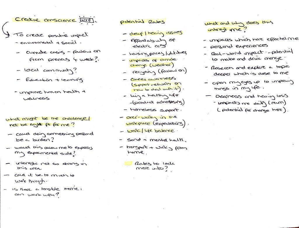 Potential routes that stand out for me are that around hearing loss? also climate change? However I’m not sure I want to go down the same path as the past 4 weeks. Something else which stands out is the potential to look into work life balance for the self employed (what resources are available right now)