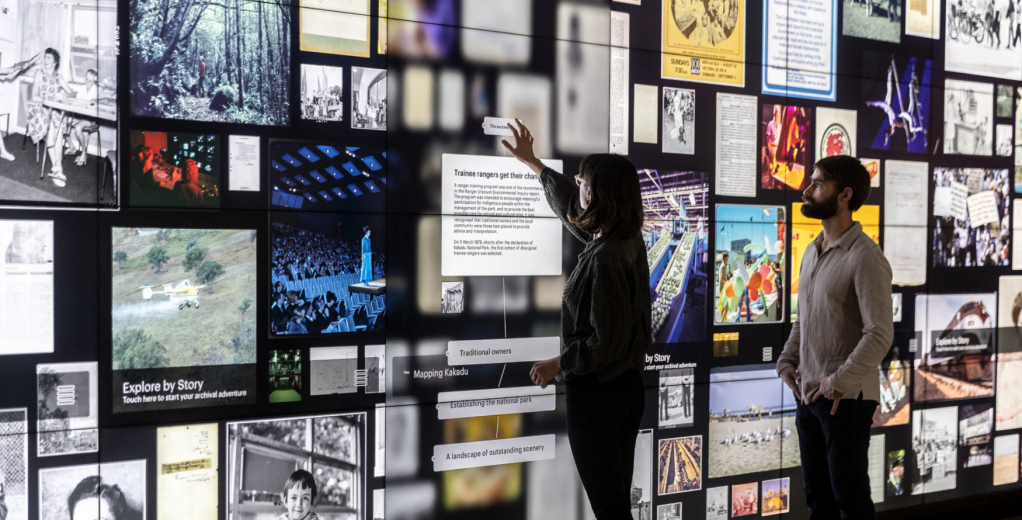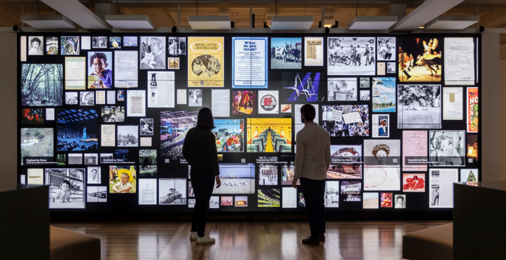 Collider have produced an interactive wall based on the framework of traditional storage vaults at the National Archives of Australia. The first thing which strikes me is the chaotic nature the work is displayed, for me it does become overwhelming and I wouldn’t know where to start? However on the other hand I do want to get involved and see what happens? So a positive and negative in my opinion.