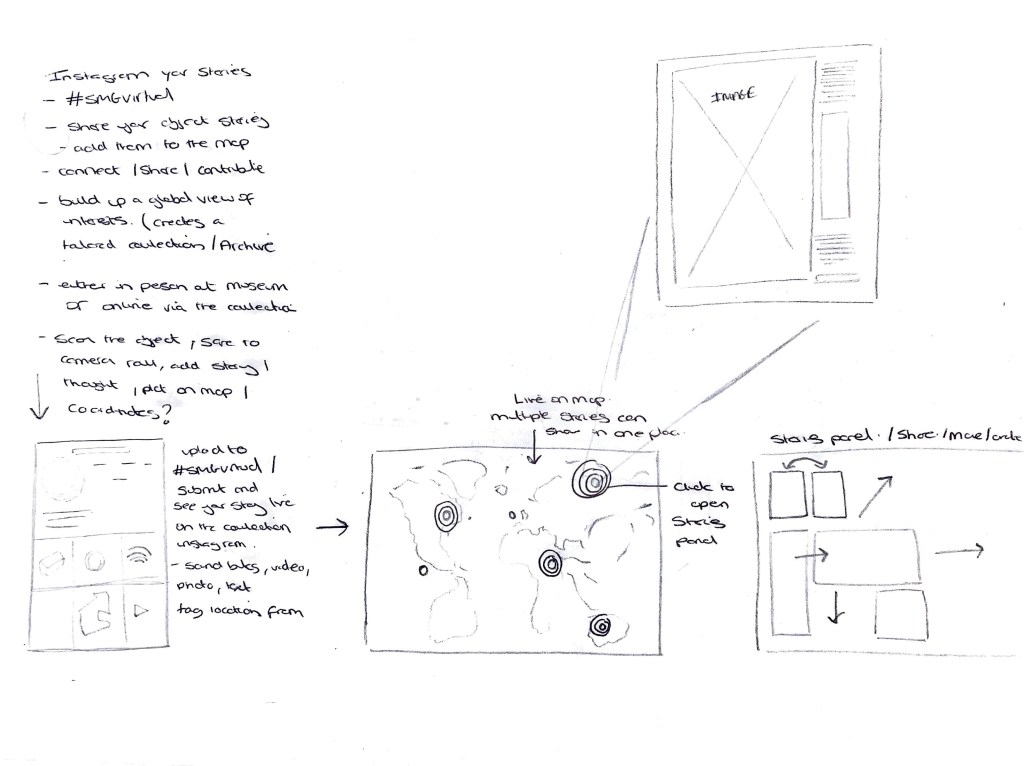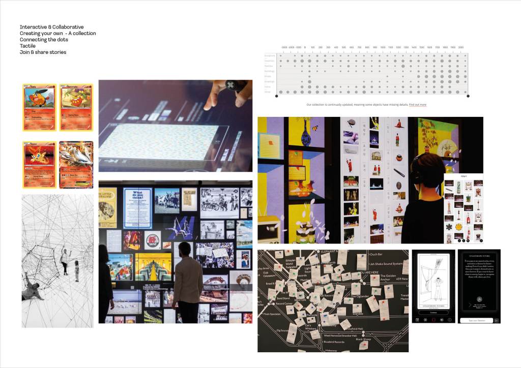 I envisage this to also feature live within the museum itself. This idea also considers the technology and adding an element of tactility to the solution – It feels over the last few years we have been forced onto technology but also we have looked back, researched and re visited elements in our lives. Look at the resurgence of vinyl and cassette tapes? Can an element of nostalgia be brought into this project to encourage collecting and discovery of stories.