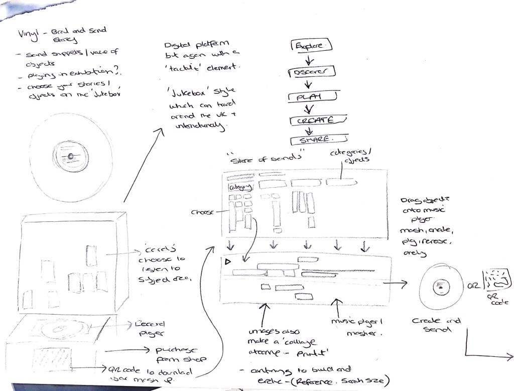 Still looking at nostalgia and how certain trends and objects have come back around, for example vinyl. Can we create a SMG record? Can the objects and their stories be produced into sounds? Making it even more accessible? Could the sounds be from the objects themselves? could they be mashed together to make a track? What if the visitor could input there thoughts on what the object might sound like into a database which is shared openly with all.