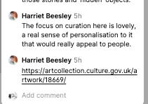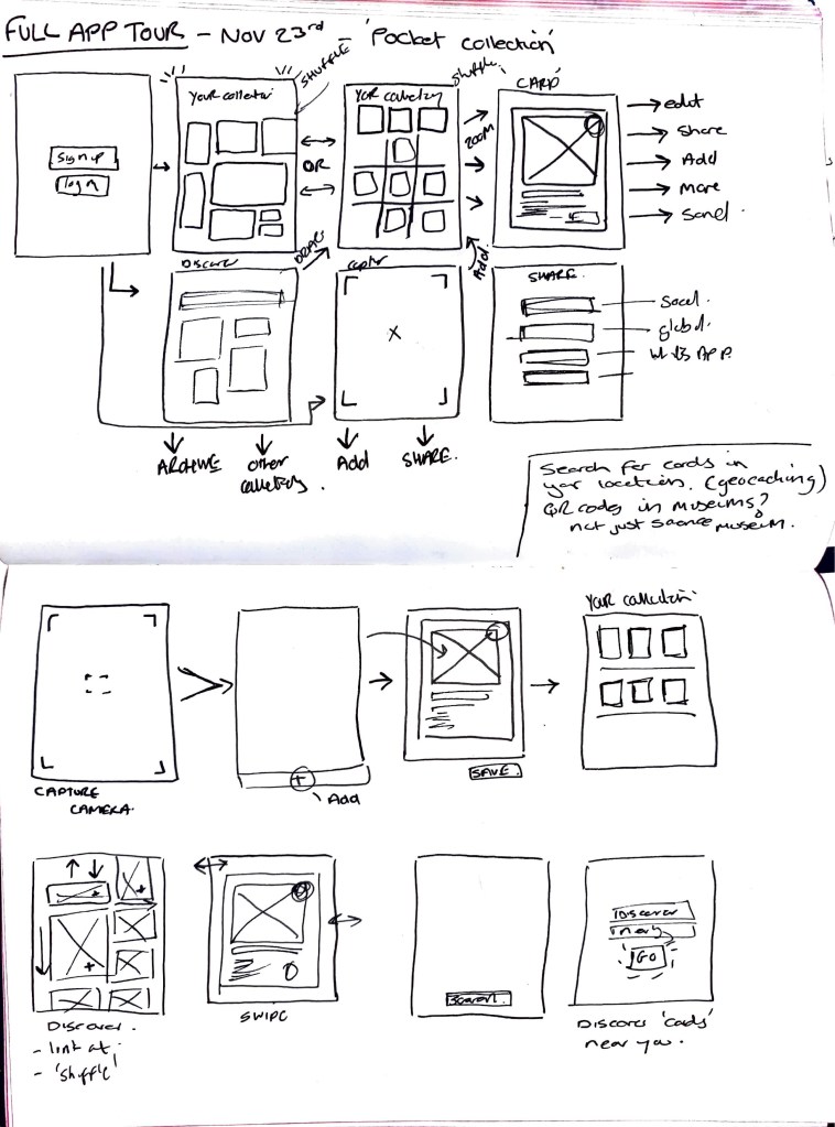 Visual imagery – click – detailed information on selected image. Here on Pinterest I like the action of clicking and image and it expanding to give further information about it , and even linking it out and adding social share. Within my app for the SMG I want to explore how this type of feature could work for the cards. I want the viewer to be able to view the card clearly.