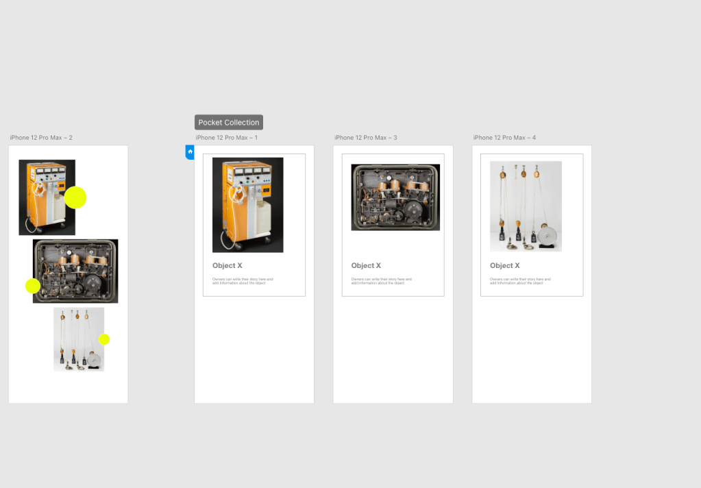 Could this be ‘your collection’ and how it looks? or could this be the homepage? Maybe it’s not clear, maybe the app pixelates the images to create your collection colour pallet. Which changes on the category or if other objects are added.