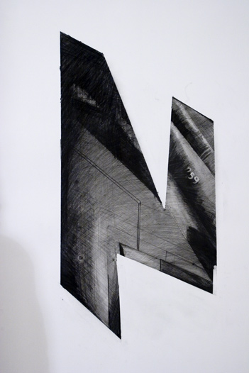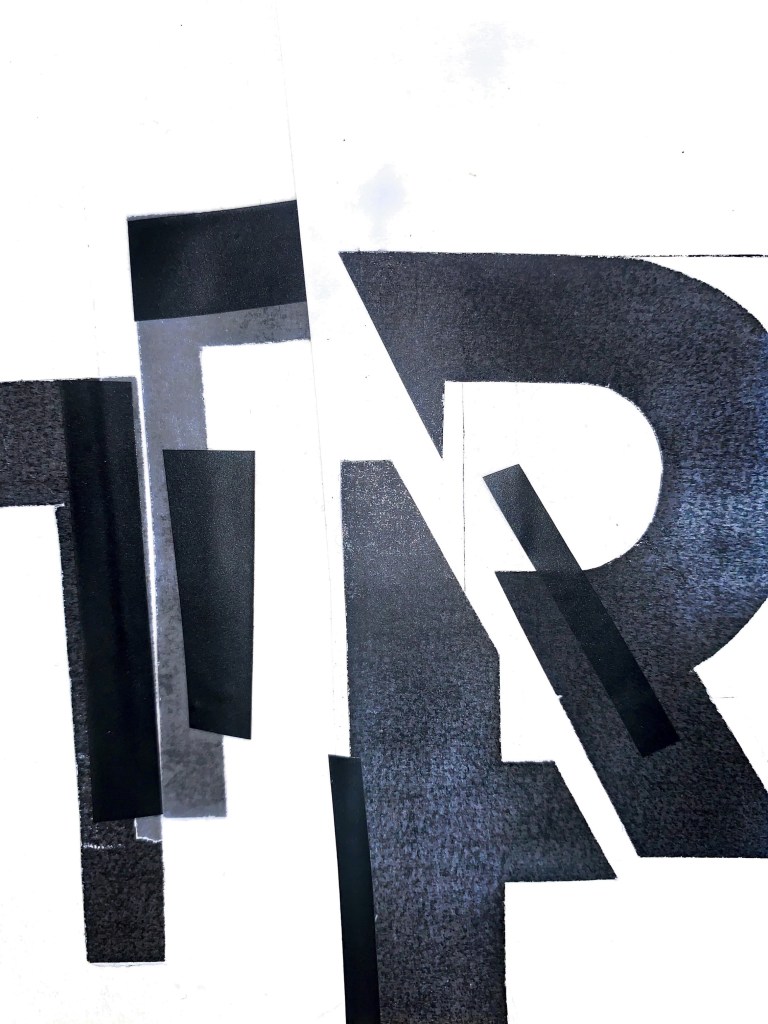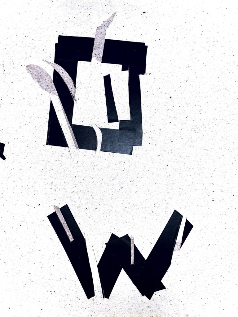 I wanted to capture that element of deterioration and weathered mood here. But not that I wanted to almost use a similar vinyl material. Here I have used electrical tape to start constructing the letterforms. This then led me to start cutting into the letters at different points, to distress, at the moment though I think it feels too forced, it needs to be more natural?