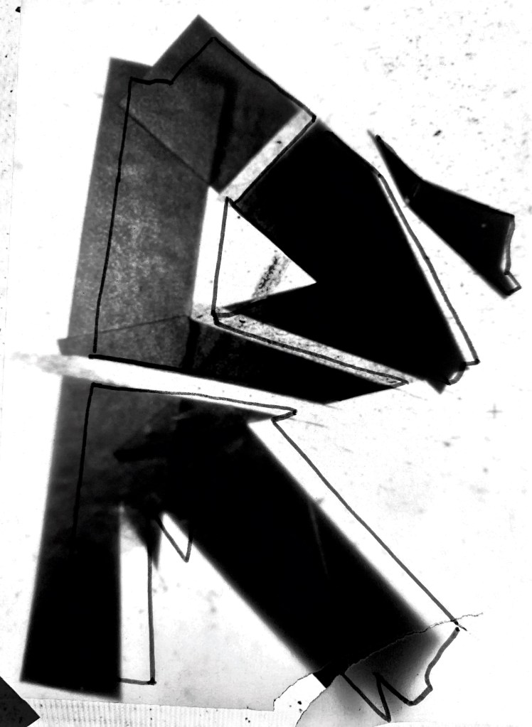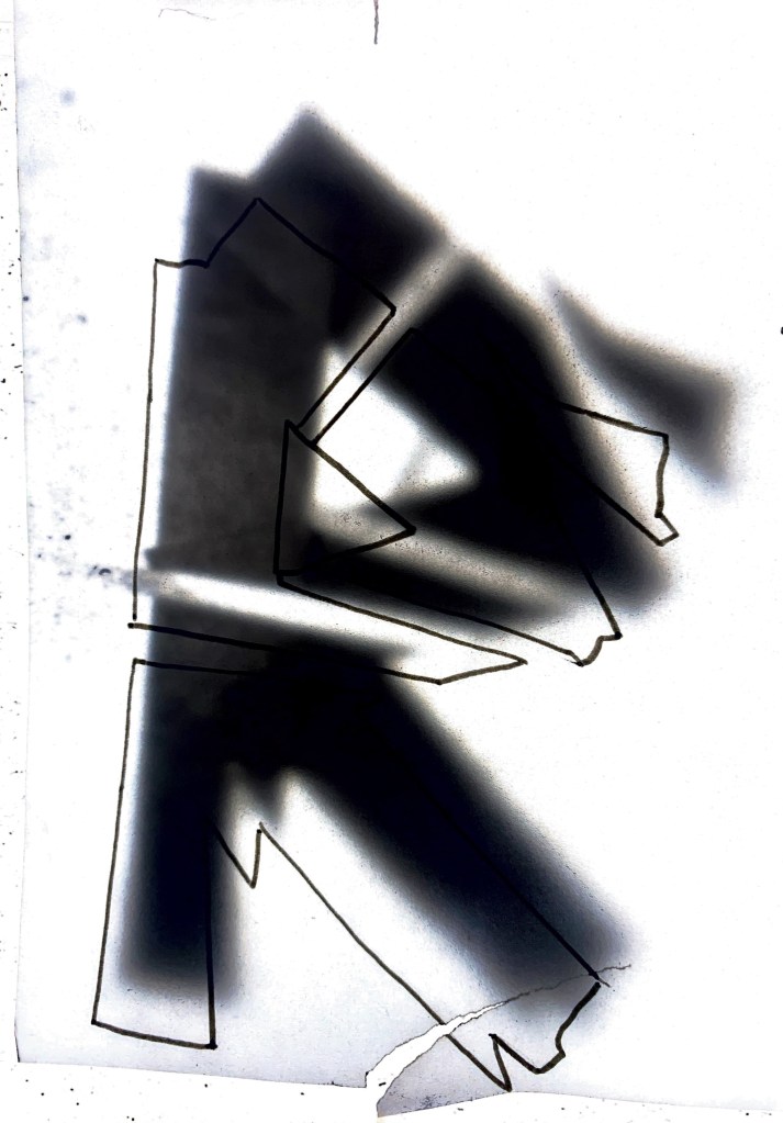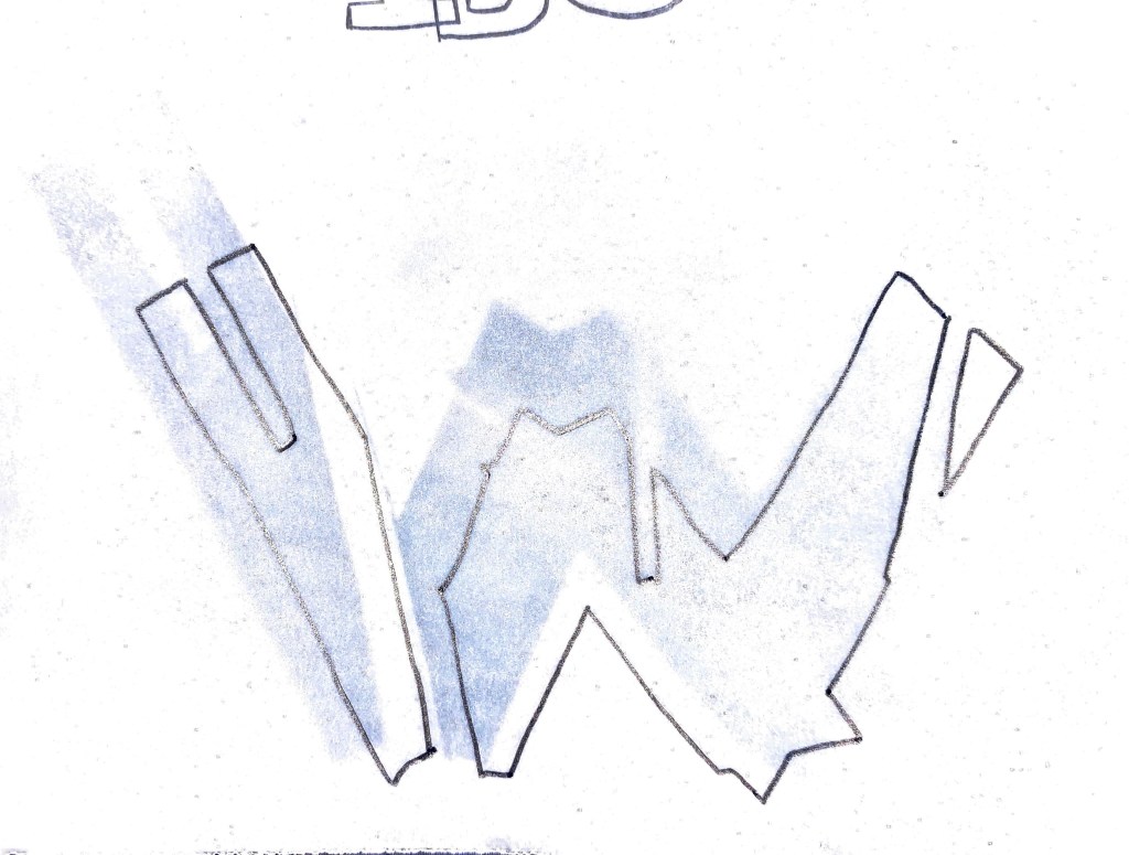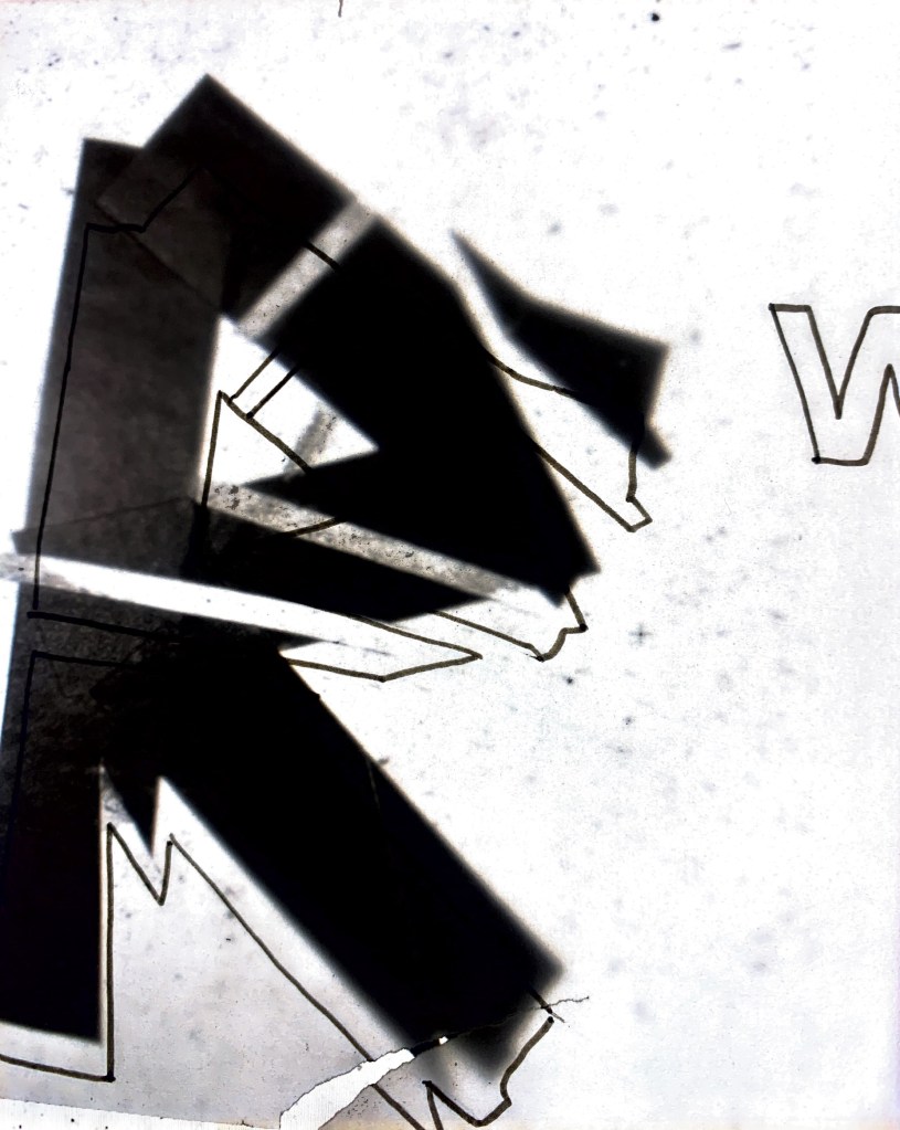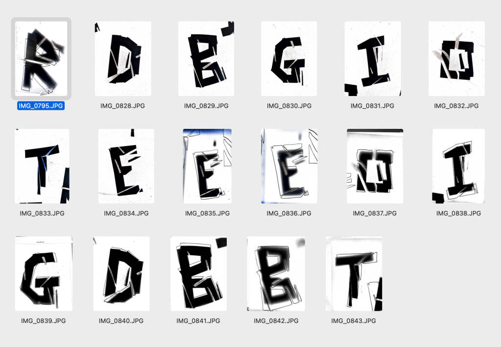 The original designs below have started to be constructed into a form (shape) to add to that ongoing unknown? Is the fact it’s illegible as a title ok? Maybe The lines here are again to much? This way of working has been informed by the work of both Cecil Touchon and Daniel H Cantwell. Deconstructing the letterforms, overlaying, mashing to create more of a design rather than a piece of typography.