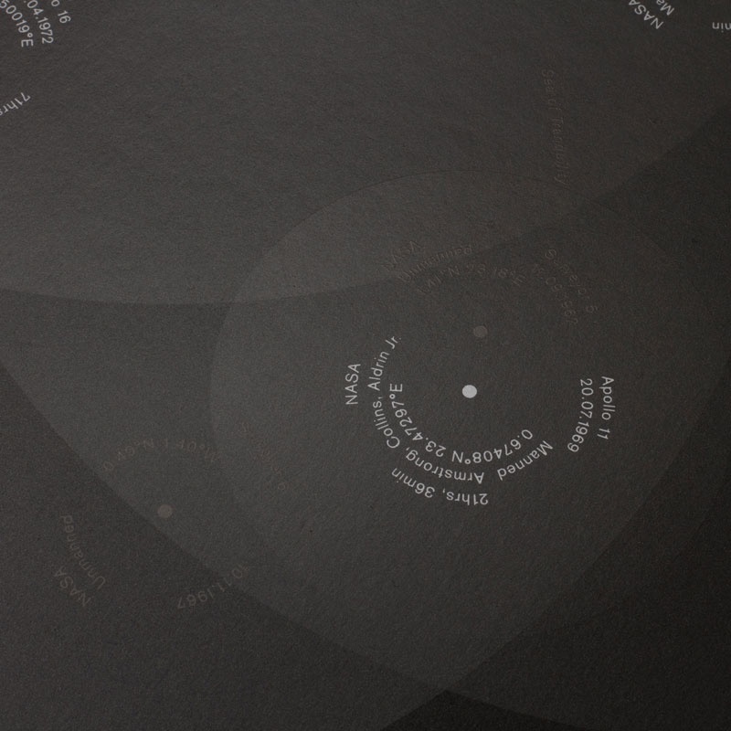 What is being told within the graphic? Design agency, Accept and Proceed visually communicate and document the history of all the moon landings from July 1969 to present day. The infographic doesn’t simply reveal the timeline, it documents moments in history. The historical and monumental missions have been captured and visually displayed, acting in a way as a celebration of these events.