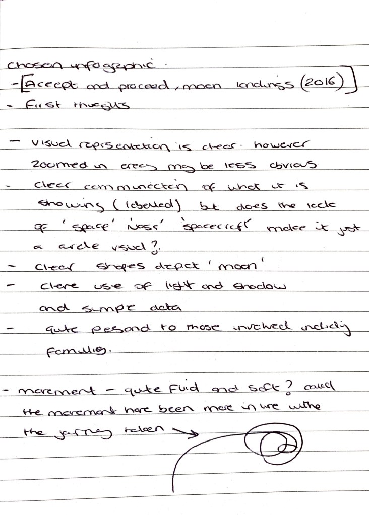 One question which came to my mind was why only a monochrome palette? And why no representation of the journey and spacecraft? Even if this was a line or elements of the spacecraft. For me this would add further context to those who may not be so aware of these missions. It almost starts to verge on a typographic piece rather than a universal language which is associated with infographics, communicating key information. Where is the border when it comes to this?
