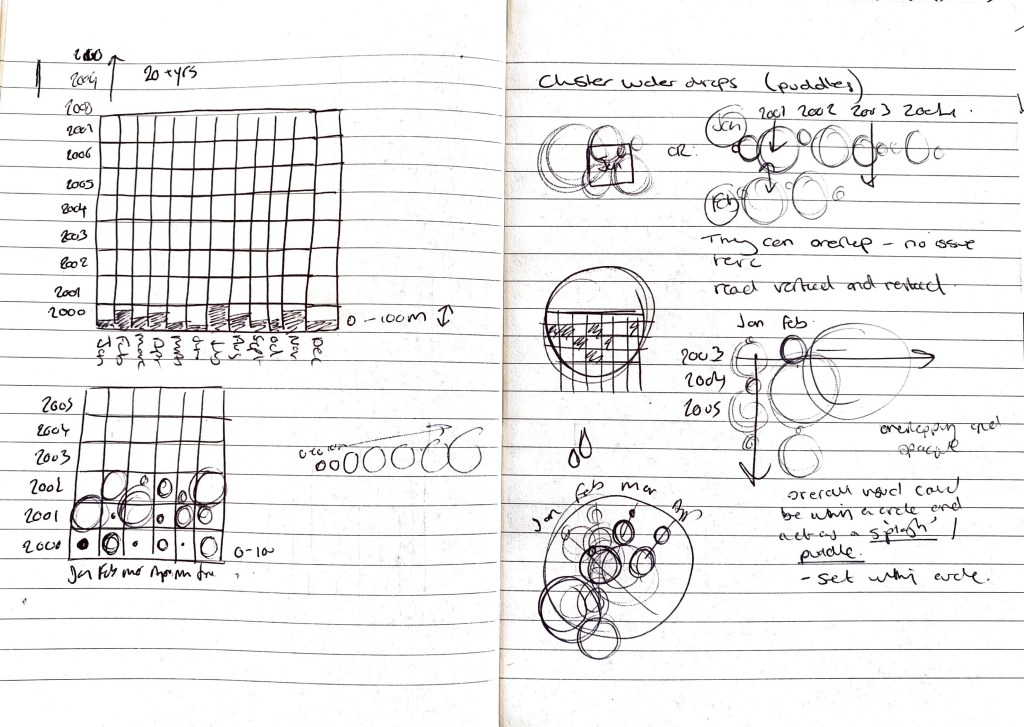 Could different colours represent different years? Or could colours show different amounts of rain for example over 100ml or below 50ml? Viewers need to be able to understand whats on show. Does the information being shown communicate anything?