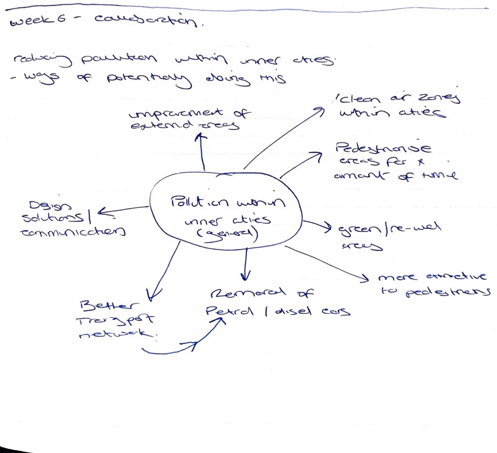 Going to focus on Pollution within inner cities. I have explored a couple of thoughts around what this looks like / is. For example the pedestrianising of streets which are currently roads and ‘clear air zones’ these becoming more common today as we face environmental challenges globally.