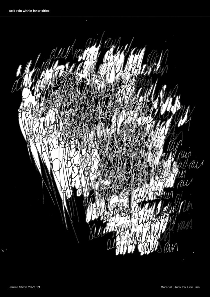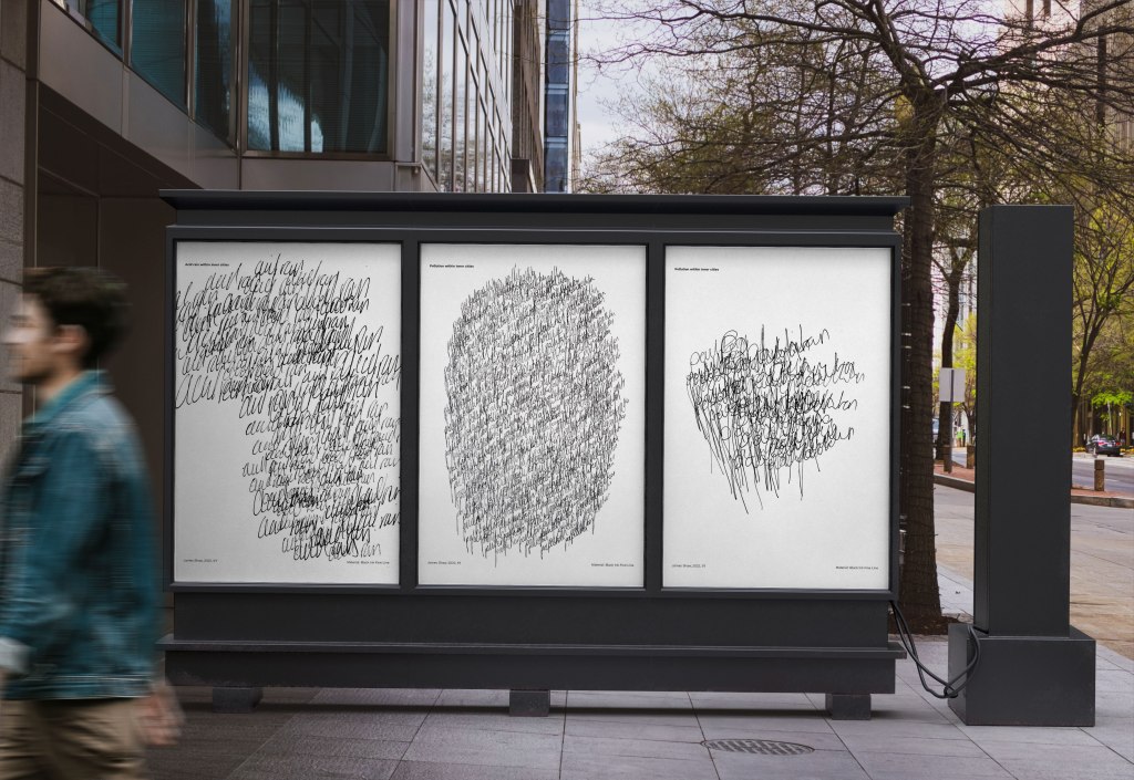 I did a set of visual responses after and during talking to a number of people to capture their thoughts. This thought of chaos and sense of overwhelm from the subject but also the mass pollution within a city which spreads out and stands still. For example in Bath pollution is localised and has hot spots with more dense pollution. These typographic responses show the dense pollution and emotion of how important it is we recognise what is happening.