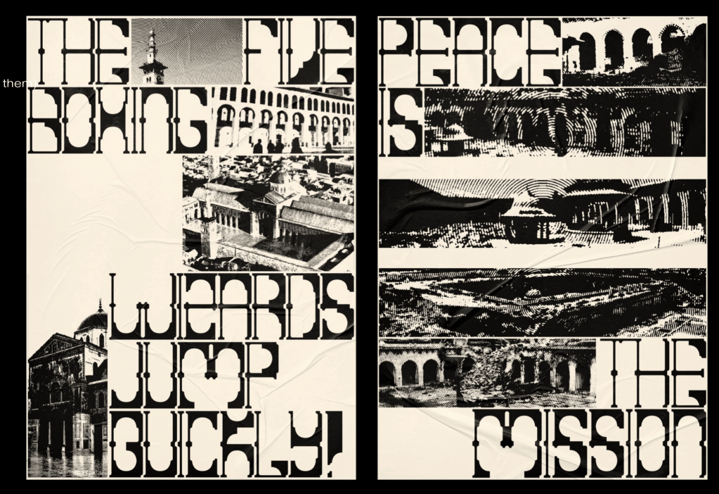 Influenced by the direct take from the building and how its form work so well together. What would be interesting here is if textures, materials from the mosque were used in the display of the typeface. Would that add further narrative and play? Or would that distract and takeaway from the typeface?